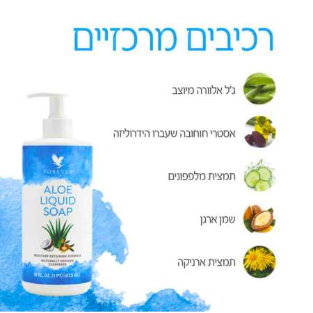 הסבון הנוזלי של Forever מבוסס על ג’ל אלוורה אורגני טהור, שמנקה את העור בעדינות מבלי לייבש אותו. הנוסחה הייחודית מרגיעה, מאזנת ומעניקה תחושת רעננות טבעית, כך שהעור נותר חלק, גמיש ונעים למגע – גם אחרי הרחצה.